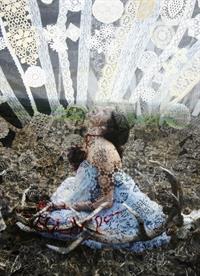 In den Fotografien von Eva Petrič wird eine Frauengestalt (die Künstlerin selbst) mit einem Netzwerk aus Spitzen überlagert.