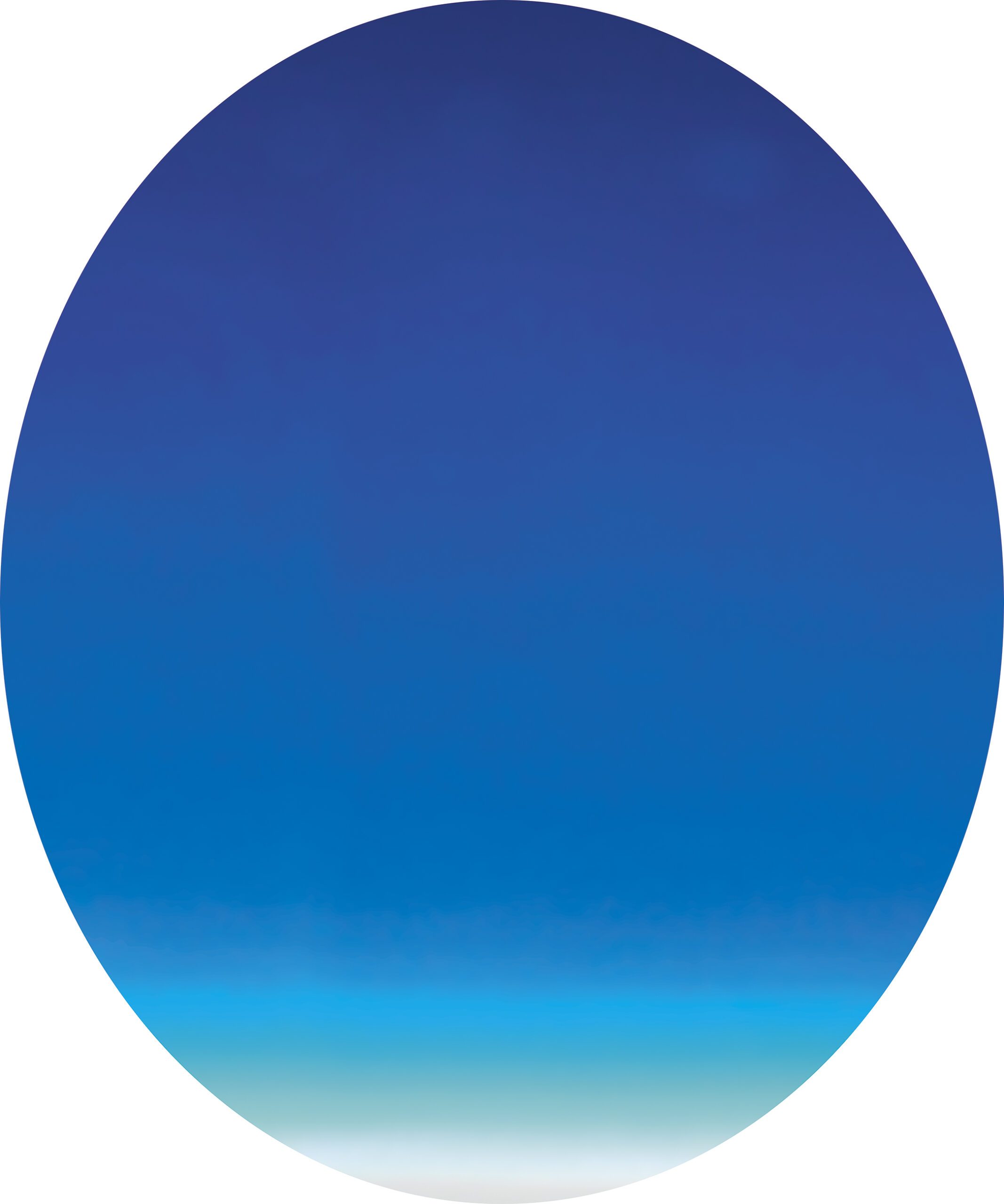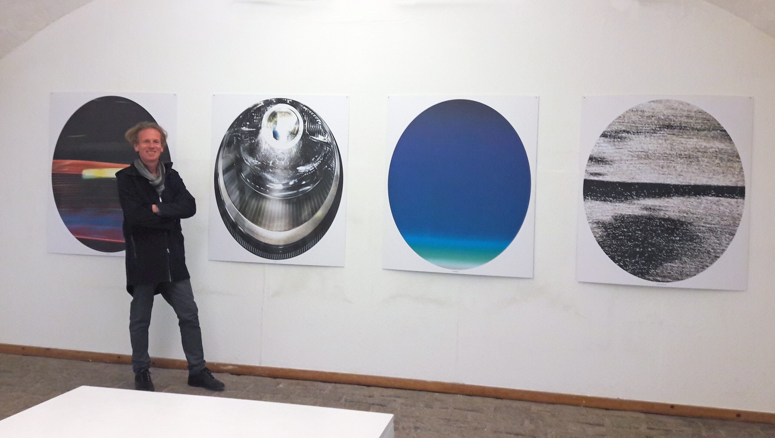 Diese für diese Ausstellung entstandene Serie ist von einem speziellen Format – oval in zwei verschieden großen Quer- oder Hochformaten – geprägt. Damit gelingt es Dieter Huber, seine ganz unterschiedlichen Licht-Aufnahmen zu konzentrieren, ihnen jeweils ein Zentrum zu geben. Aus den Titeln kann der Betrachter eventuell den Ort, wo das Licht mit der Kamera eingefangen wurde, erfahren. „Prater“ verweist auf die vielen, dort schnell vorbei sausenden Lichter, „Lombardia“ zeigt einen Himmelsausschnitt über der grünen Landschaft, „Fuschlsee“ Spielgelungen im Wasser“, „997″ ist ein Auto-Scheinwerfer. Bei anderen Bildern ist es nicht so eindeutig, wie bei „Lying Buddha“, wo ein Detail einer viele Meter langen, goldenen Statue eingefangen wurde. Auf jeden Fall definieren die Titel diese ins Licht gesetzten Ausschnitte.