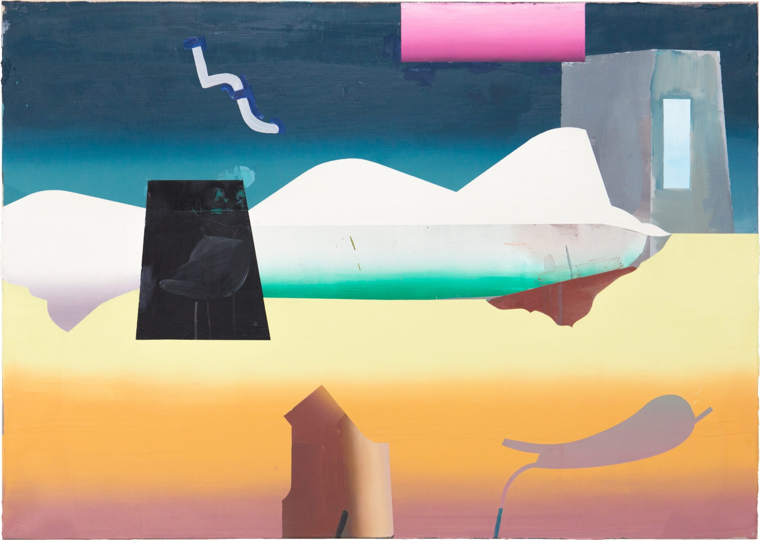 Jonas Geise war vor 5 Jahren der erste Künstler im Wien-Atelier, er stellt deshalb im Traklhaus auch neuere Arbeiten vor. Seine meist sehr geometrisch anmutende Formsprache lässt den Betrachter*innen viel Spielraum für eigene Interpretationen. Bildtitel wie „Rubick“, oder „Bubiland“ erzeugen zusätzliche Assoziationsmöglichkeiten.