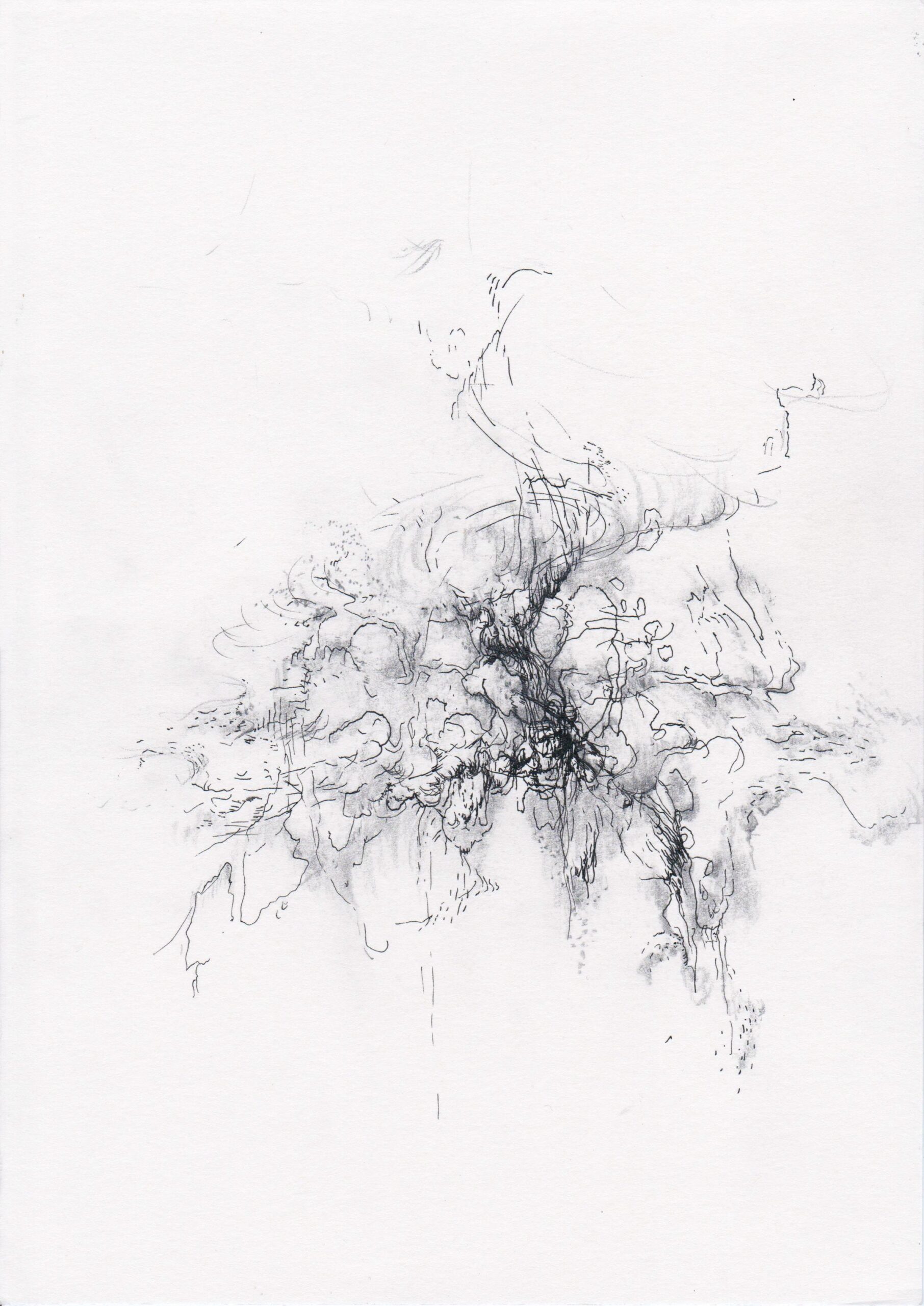 Auch von Maria Morschitzky sind vor allem Zeichnungen zu sehen, wie sie im Atelier in Wien ihren Ursprung hatten. Das Gestische, Intuitive dominiert diese Grafiken mit diversen Stiften auf Papier. Der Automatismus ist ebenso Thema einer Videoanimation der Künstlerin.