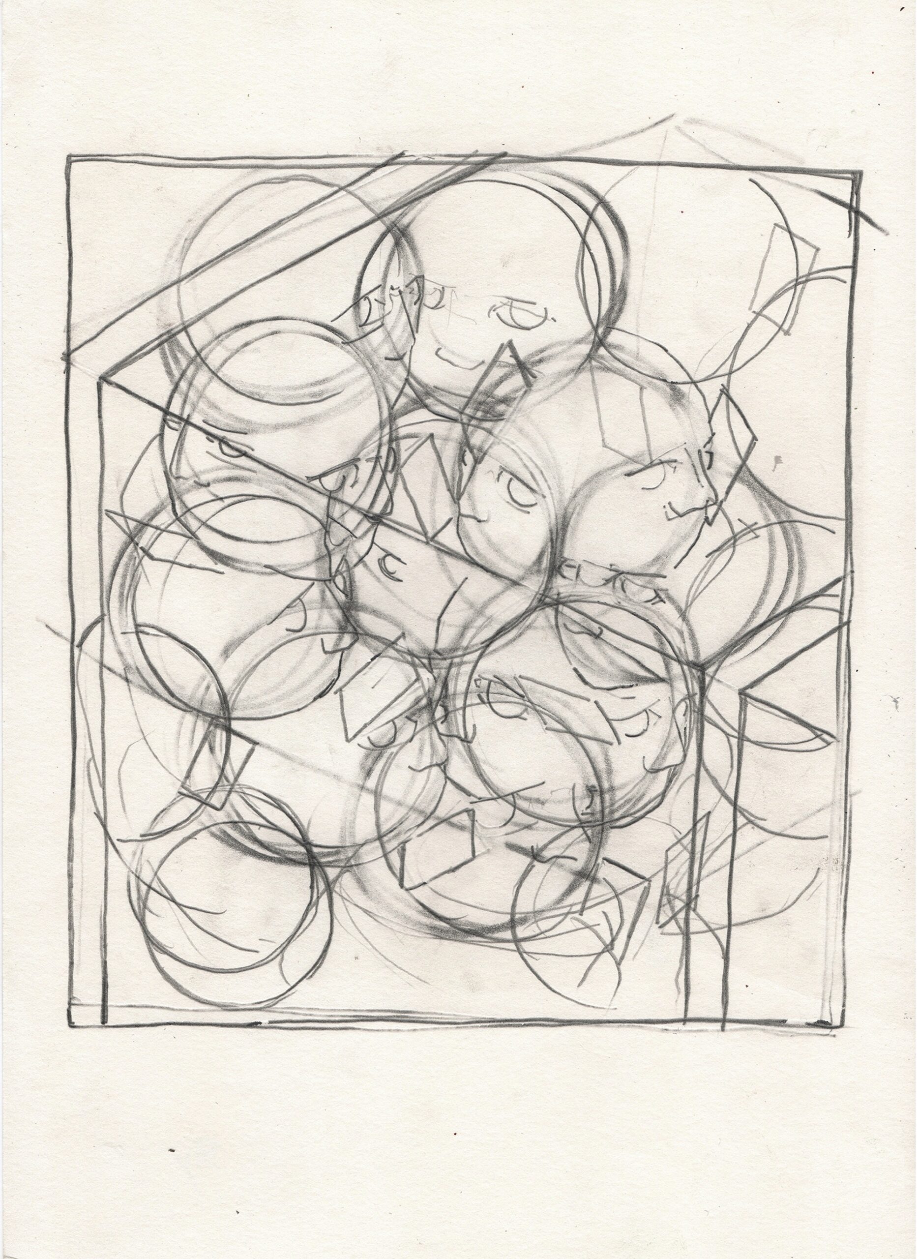 Setzt Schicho Kreiszeichnungen meist für Studienzwecke seiner großformatigen Malereien ein, entstehen aus Pressls überlappenden Kreisdarstellungen mitunter ganze Sonnensysteme.